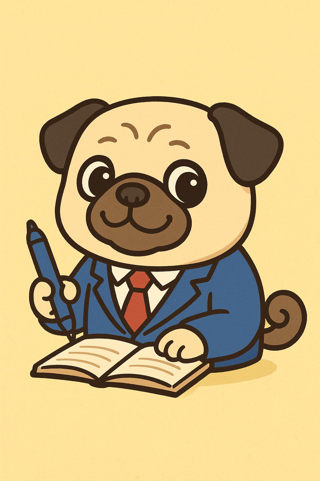 私の愛犬のパグをそのままキャラクターにしてしまいました(笑)